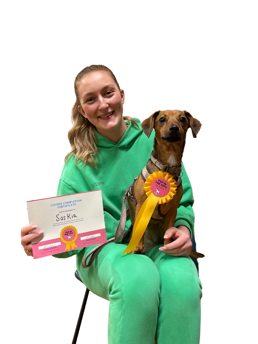 "We have a super anxious sausage dog, Florence, who is easily overwhelmed. Florence absolutely LOVED attending and was happily co-existing with the other pups. We even started heading for a drink after the classes where Florence was able to continue the settling we'd been practising in class! We can't wait for the next Pup in the City level up course and will also be booking some more 121 sessions for ongoing support. Thanks again for your advice, patience and being such a kind and positive influence on our growing bond with Florence!"